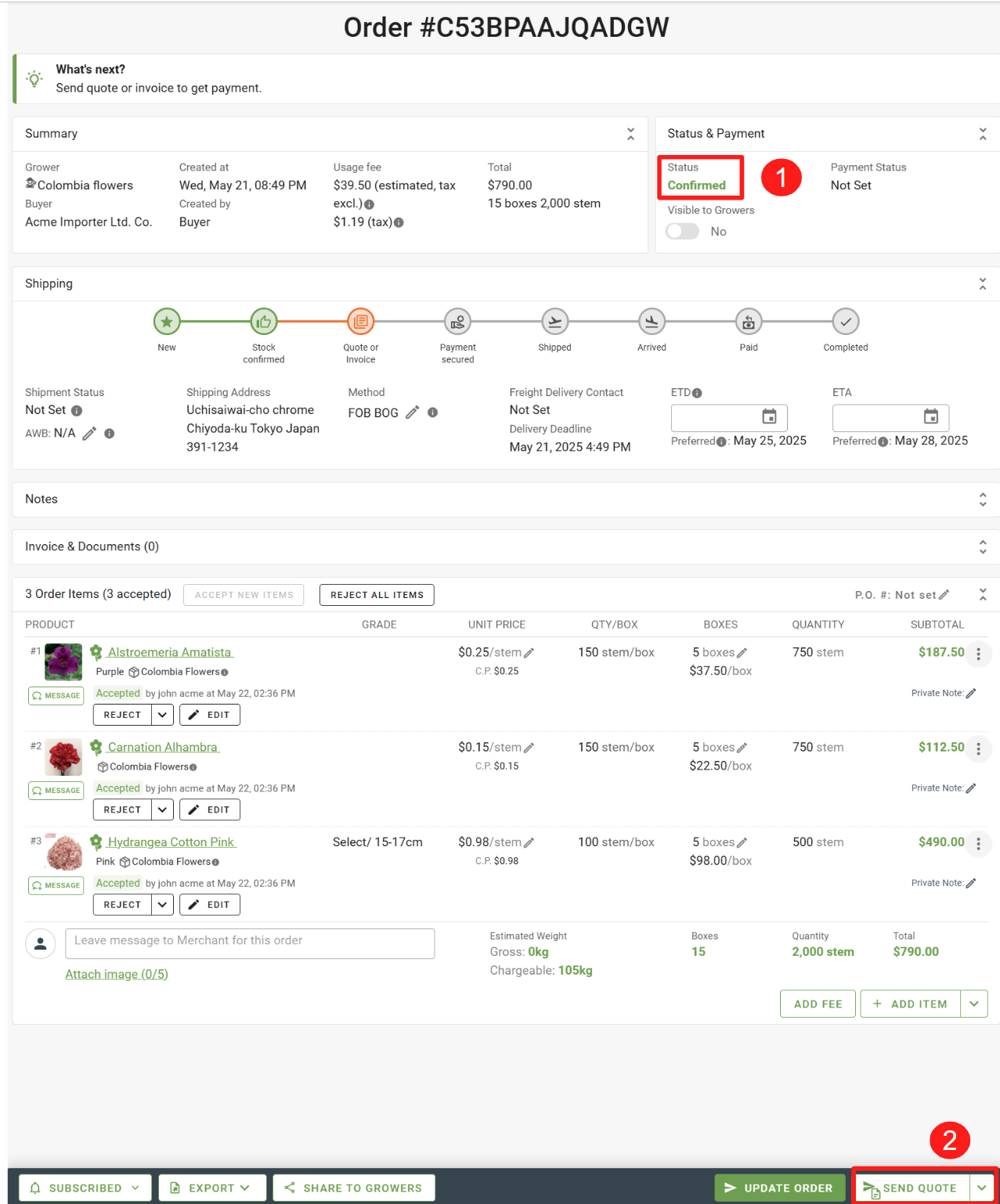 8. You can still make edits to the order after this initial confirmation if necessary. The quotation will be updated automatically once all items have been confirmed by both you and the Merchant.